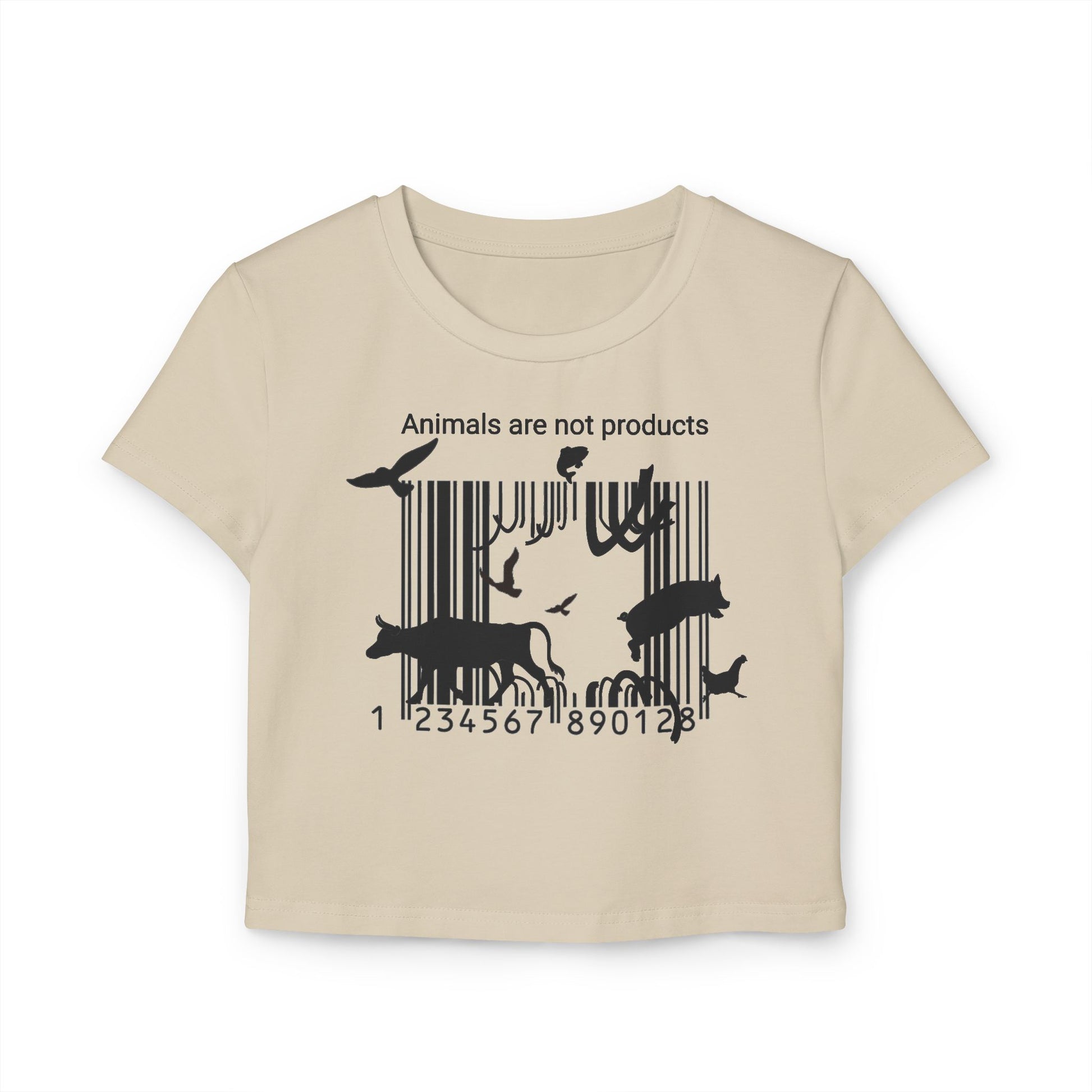 Animals Are Not Products- Women's Baby Tee - Escape The Barcode