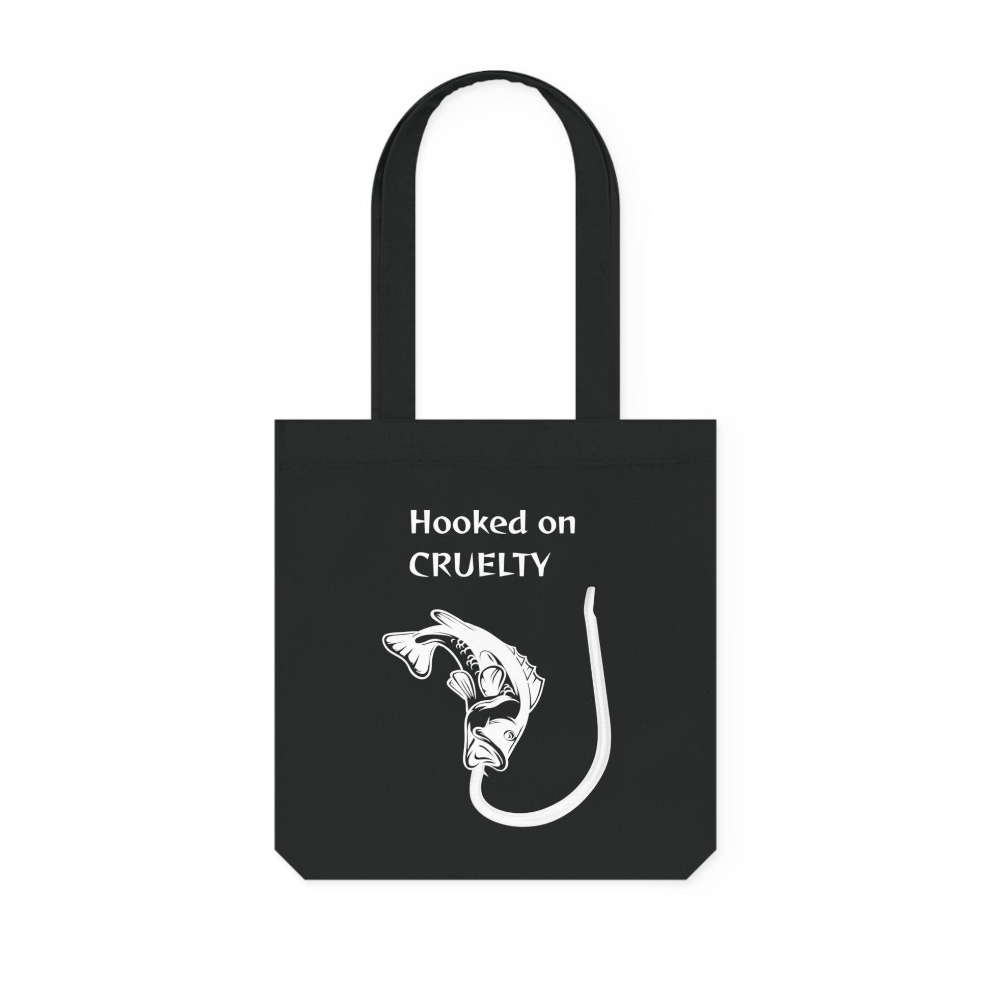 Hooked on Cruelty - Woven Tote Bag - Graphic Design Against Fishing - Catch the eye of fishermen